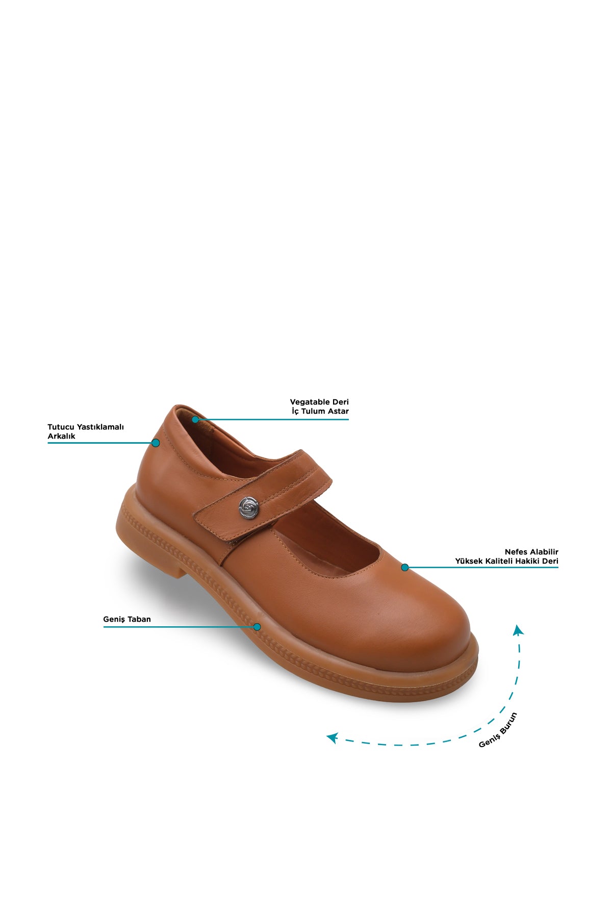 Geniş burunlu, vegetable deri iç astarlı ve esnek-hafif tabanlı tasarımıyla günlük kullanımda bacak ve ayak konforunu desteklemeyi hedefleyen kadın varis ayakkabısı. Tek bantlı Mary Jane formu sayesinde hem pratik hem de şık bir kullanım sunar.