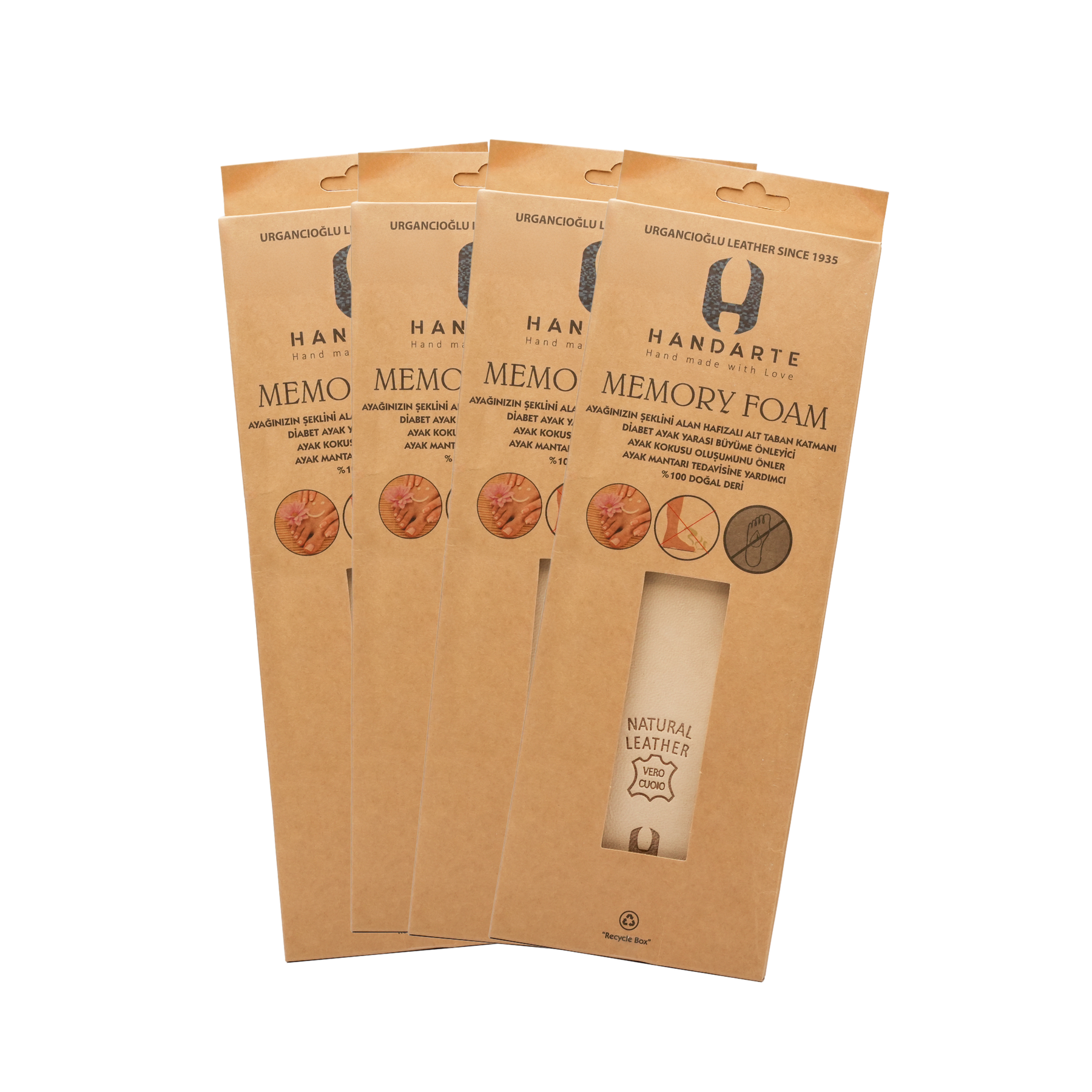 - Handarte’nin özel olarak tasarlanmış hafızalı (memory foam) + deri tabanlıkları, günlük kullanım için idealdir ve ayaklarınıza konfor sağlar. Ayakkabınızın mevcut tabanlığını çıkarıp Handarte tabanlıklarını kullanmanızı öneririz.
